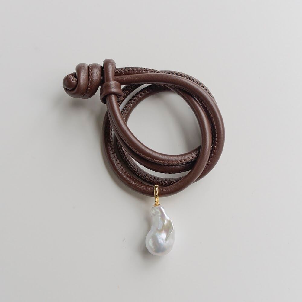 バロックパールを使用した、レザーブレスレット。チョーカーとしても使うことが出来ます。